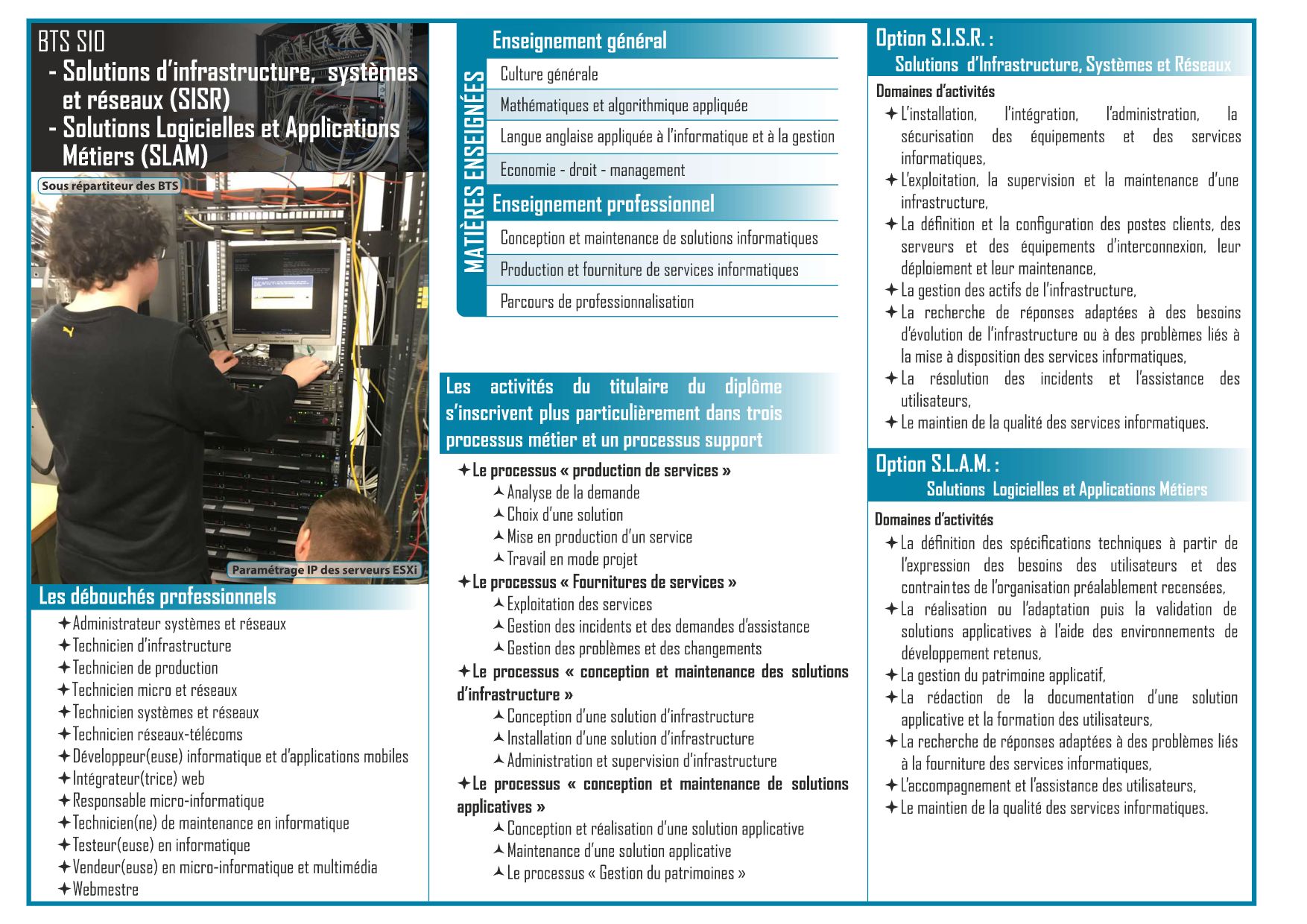BTS Services informatiques aux organisations option B solutions logicielles et applications métiers